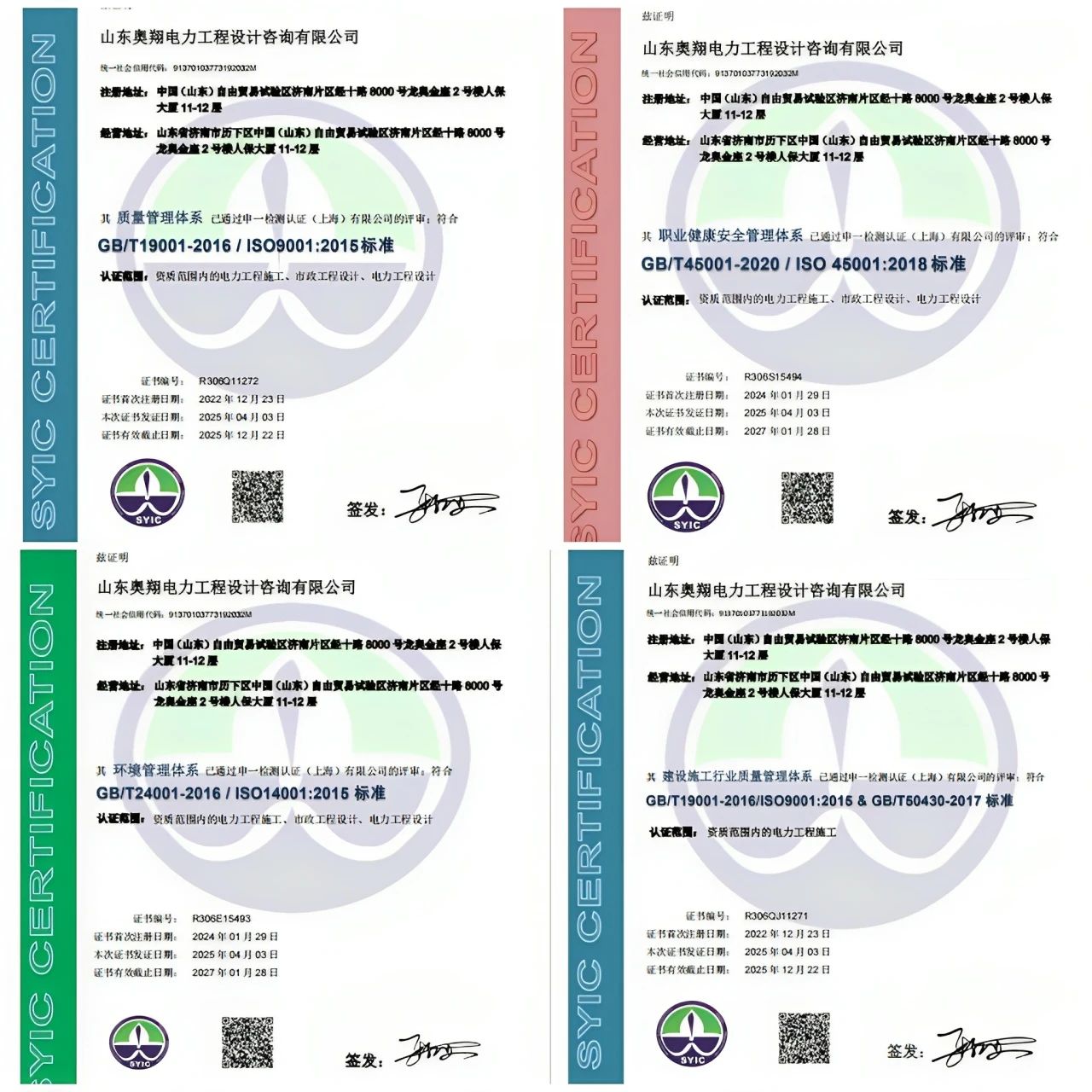 山東奧翔電力工程設(shè)計(jì)咨詢有限公司順利通過(guò)ISO三體系及GB/T 50430認(rèn)證